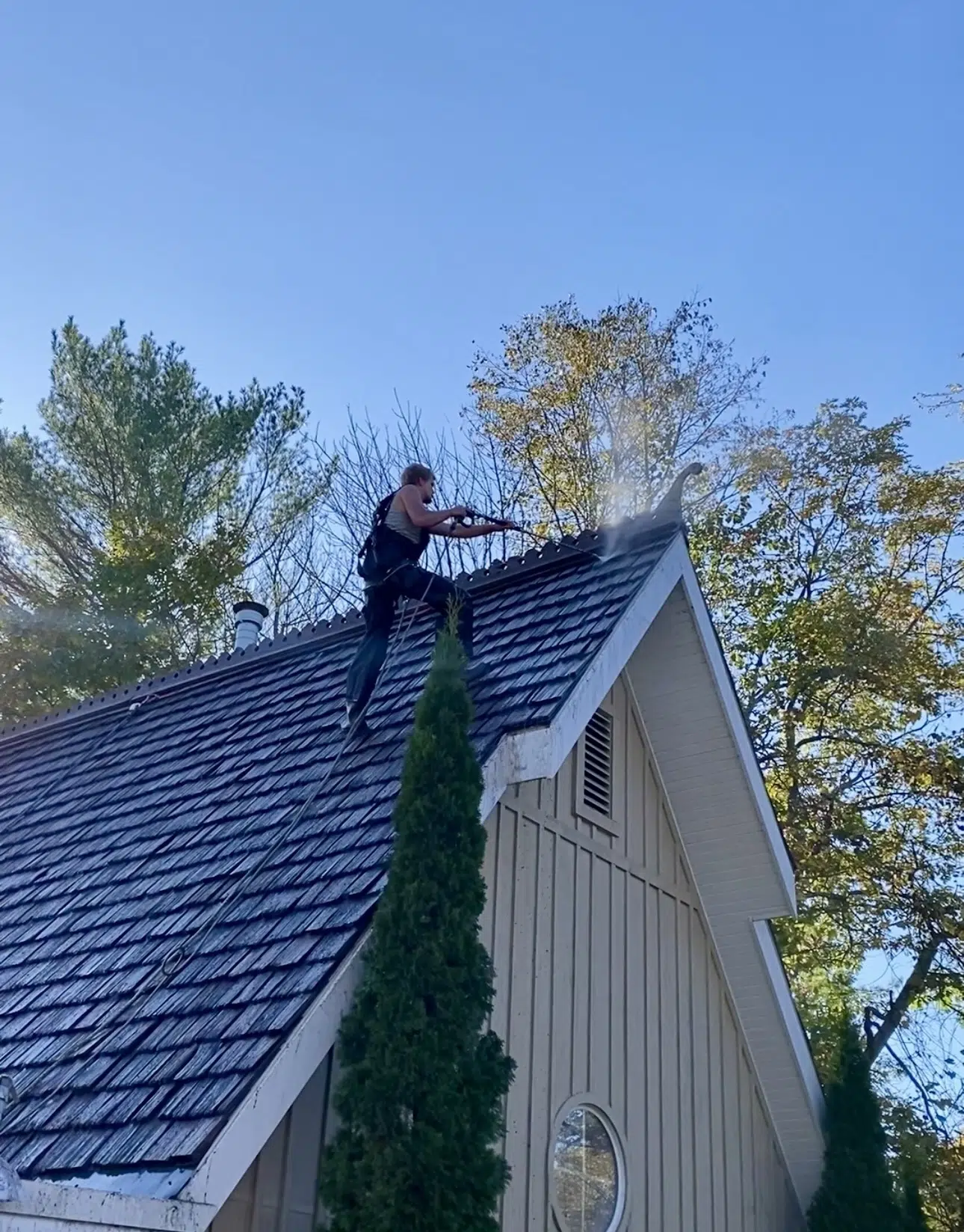 Cambridge properties, particularly those near the Grand River or in mature, treed neighborhoods, face constant pressure from moisture. Over time, even the highest-quality cedar shingles can begin to “choke” under a layer of moss and debris.