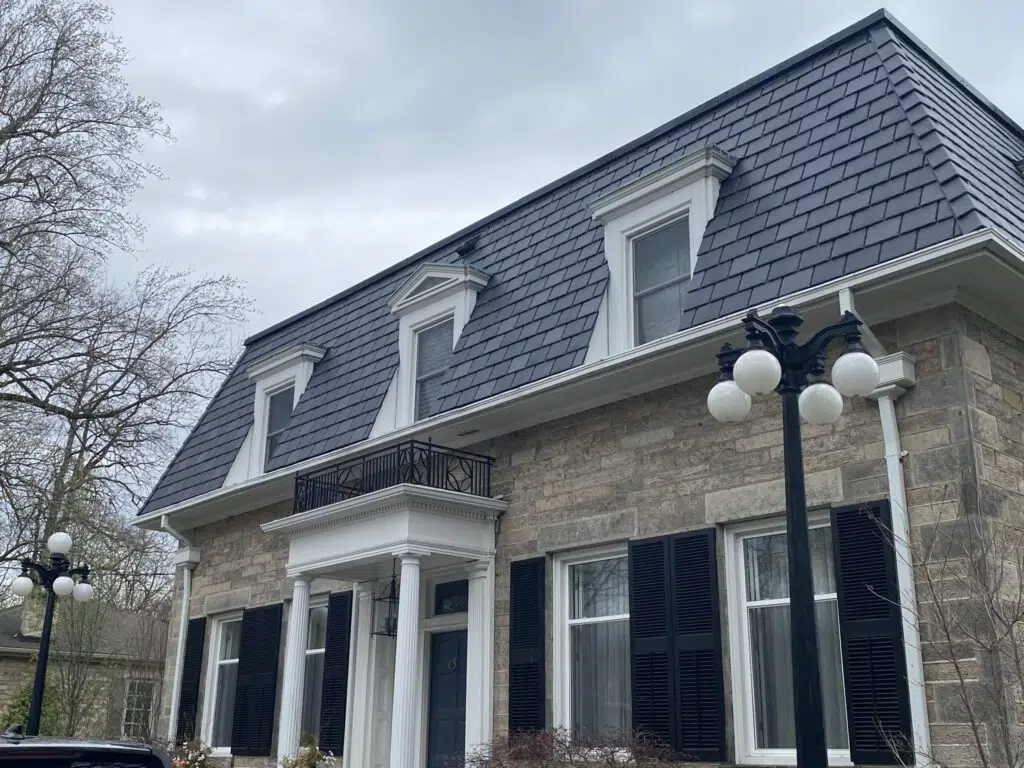 | Appearance | Warm, authentic wood grain, weathers to silver | Highly realistic cedar-shake texture, uniform color | Slate/tile-style profile, consistent color |